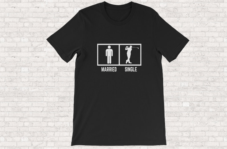 Married - Single | Funny Golf T-Shirt for Men | Dark Humor Divorced Golfing Shirts | Parody Golfer Shirts | Ex Wife Tees Gift Idea for Him