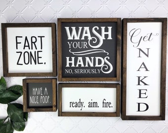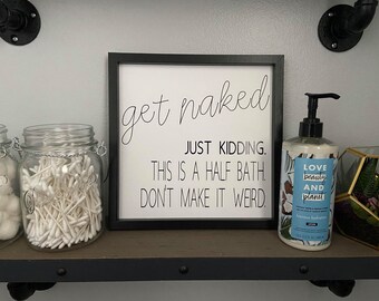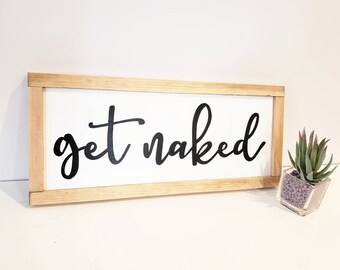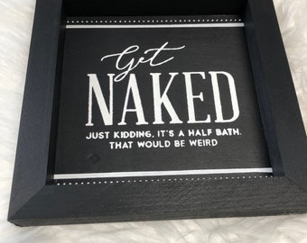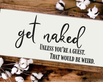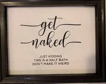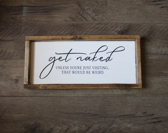 Get Naked Framed Wood Sign, Unless You're Just Visiting, That Would Be Weird, Funny Bathroom Decor, Custom Home Decor, Modern Farmhouse