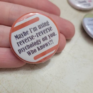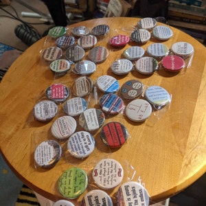 THIS BUTTON CAN BE A MAGNET FOR AN EXTRA 50 CENTS! All you have to do is go to the "Magnets / Reserved Listings" section of this store, pick up one of the "1.25 in. round magnet" listings, and specify which design you'd like in the Message to Seller at checkout. If you want more than two magnets, write us and we'll set up a reserved listing.