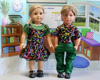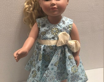 Merry and Bright Knot Dress in Light Green Joyful Damask 18 inch Doll Size Ready to Ship