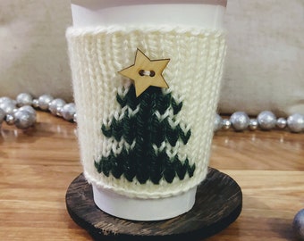 Handmade Reusable Tree with Star Button Beverage Sleeve
