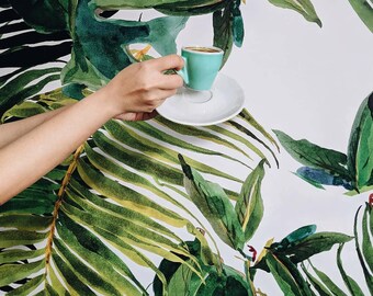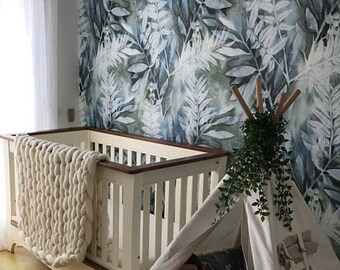 Watercolor painted Leaves Mural | Self Adhesive Removable Wallpaper | Peel and stick temporary wall sticker | TROPICAL #5