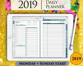 Digital Planner Daily Hourly Goodnotes 2019 Business Planners Ipad pro bullet planners notability pdf
