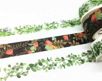 Plants Washi Tape, Flowers Washi Tape, Washi Tape Set, Leaf Washi Tape, Leaves Washi Tape, Green Paper Tape,Cute Washi Tape,grass washi tape