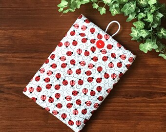 Each sleeve is handmade with high loft padding and a button closure to keep your treasured reads nestled safely inside.
