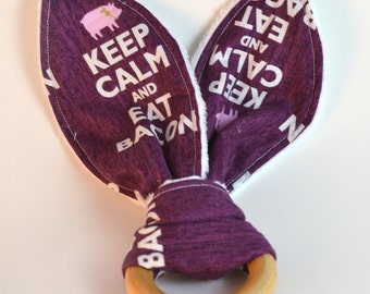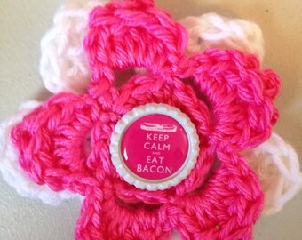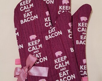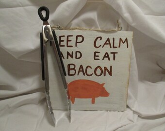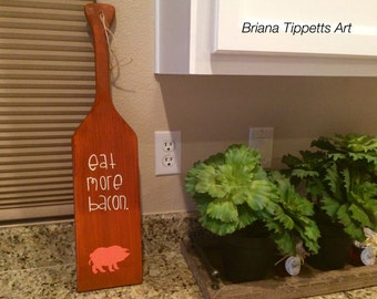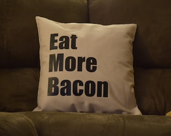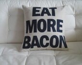 Eat More Bacon - handmade appliqued decorative throw pillow / cushion 16in (41cm) sq - make a statement