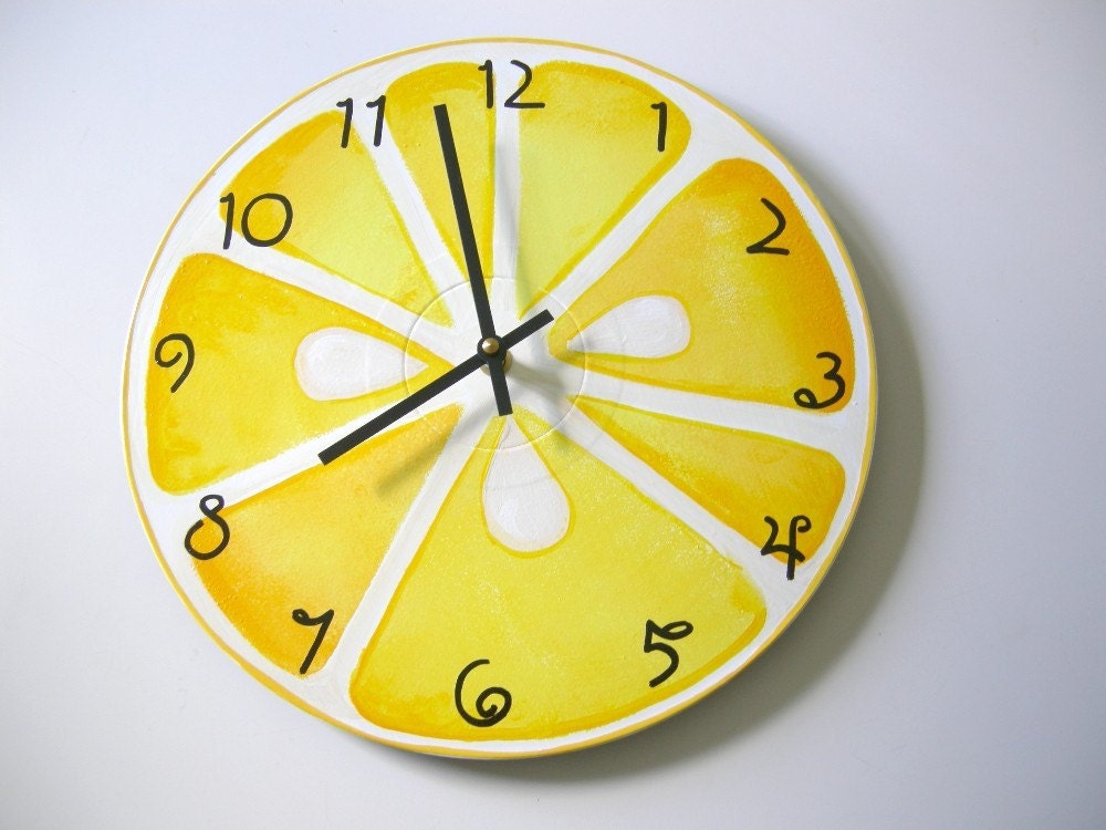 Hand painted lemon slice recycled wall clock - by Bearly Art - Westfield, Ma (sect. k)