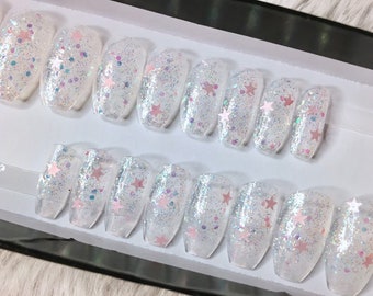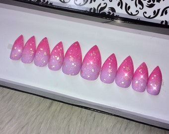 Fairy Dust | Custom Any Shape | Matte x Glitter | Ombre Iridescent Star Unicorn | Pink Purple