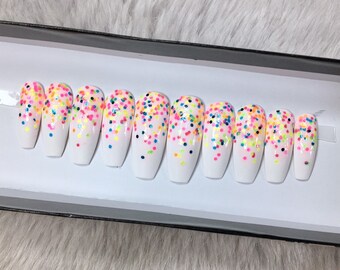 Sugar Coat | Custom Any Shape | Prom Graduation | Ombre Iridescent Glitter | Clear Rainbow