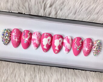 Barbie | Custom Any Shape | Beauty Doll Necklace Glitter Crystal Marble | Pink White Silver