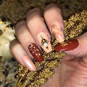 Amber Lights | Custom Any Shape | Marble Glitter Crystal Studded | Blush Pink Deep Burnt Orange Brown Gold -