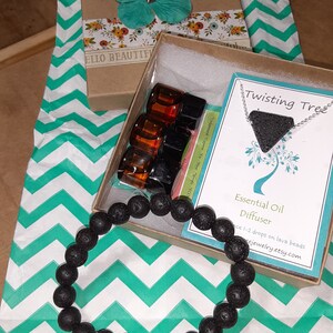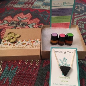 Essential Oil Gift Set, Lava Stone Diffuser Necklace Set, Stress and Anxiety Relief Samples, Self Care Gift Package, Add On Item