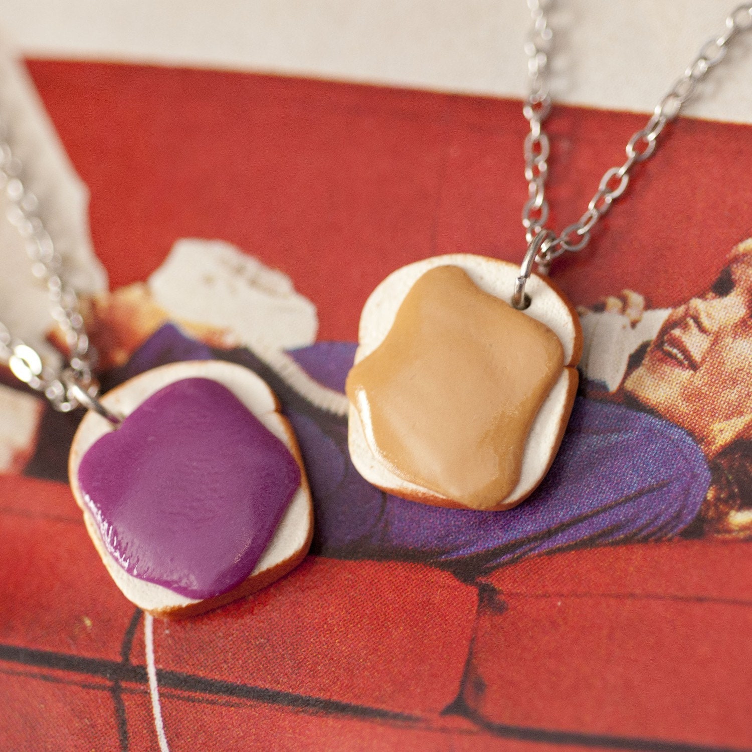ON RESERVE Best Friends Necklace Set - Peanut Butter and Jelly Sandwich Handmade by Roscata