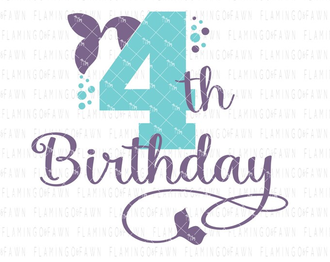 4th birthday mermaid svg cutting files, fourth birthday svg, 4th birthday girl svg