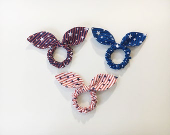 Knot bow scrunchie patriotic stripe,4th of July scrunchie,Knot bow hair tie,Girl teen gift,Ponytail holder,Bunny ear hair tie accessories