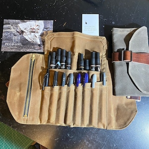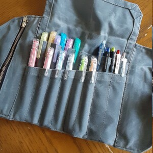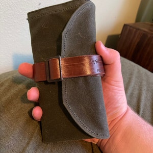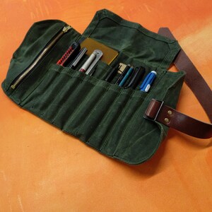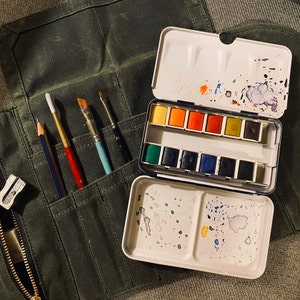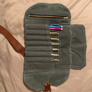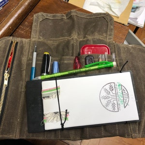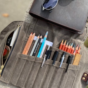 5 out of 5 starspaired with my A5 leather binder (converted to a sketchbook) i have the perfect travel art kit. it can get a little bulky depending on what you’re looking to fit into it, but i’ve stuffed it full with pencils and it still rolls up nice and fairly flat. the waxed canvas is a bit stiff on arrival, but it softens up quickly with use. i absolutely love this artist roll.