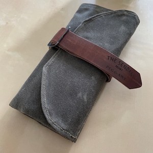 Roll Up Mini Pencil Case, Pen Roll, Waxed Canvas and Leather, 12 pockets + 1 zipper pouch by Peg and Awl | Mini Sendak Artist Roll