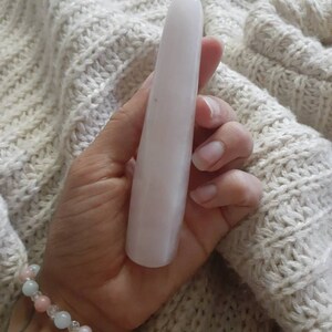 Your crystal massage wand may be used for healing, massage, pleasure and play. Use it as an extension of your own hand to consciously massage acupressure spots on your body and or inside your yoni and release tension, increase emotional well being as well as vitality in your sacred space.