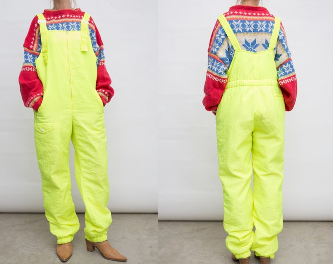 Vintage Neon Green Ski Pants, Bright Ski Trousers, Skiwear Onepiece, Snow Suit Pants, Large Size Pants, Snowboarding Gear