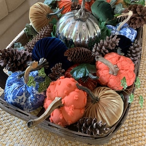 These pumpkins are absolutely adorable! They were just the added touch that I needed for my dough bowl entry way arrangement. They were made well and looked so classy and elegant! Money well spent. Thank you!