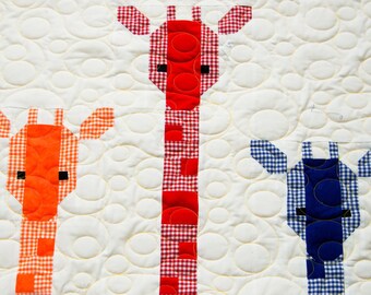 Bright & Fun Giraffe Minky Quilt, Baby or Toddler Girls or Boys, Baby Shower Birthday Gift, ~41 1/4x 45 3/4" Handmade Quilt Primary Colors