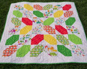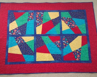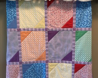 Bright & Fun, Baby or Toddler Girls or Boys Modern Minky Quilt, Baby Shower, Toddler Birthday Gift, ~43 x 51" Handmade Quilt Primary Colors