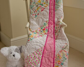 Baby or Toddler Girl Modern Pretty Pink Minky Quilt, Baby Shower, Birthday Gift, ~39 x 47" Handmade Quilt