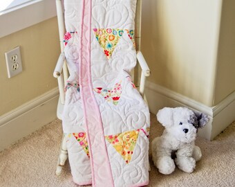 Baby or Toddler Girl Modern Minky Quilt, Baby Shower, Birthday Gift, ~43 x 43 Handmade Quilt, Pink Girls Quilt