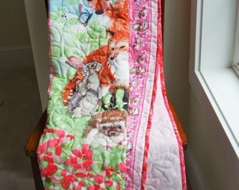 Adorable Forest Friends Handmade Quilt great for Baby or Toddler Girl Modern Minky Quilt, Baby Shower, Birthday Gift, ~50.5 x 54"