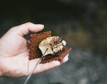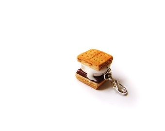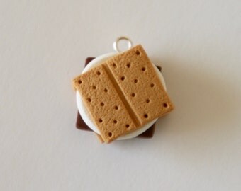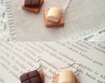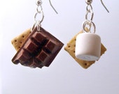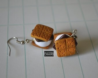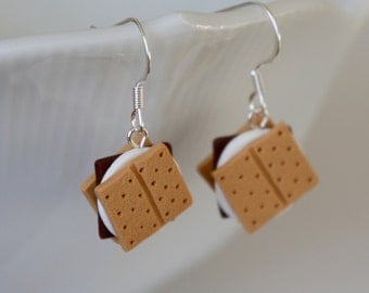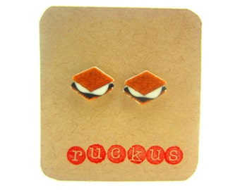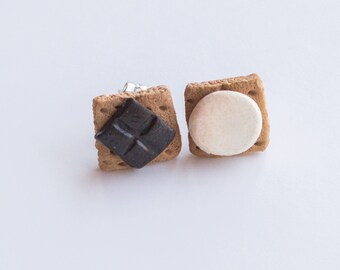 Smores Earrings - Polymer Clay miniature food jewelry - handmade smores kawaii cute earrings chocolate marshmallow graham cracker charm