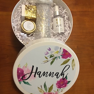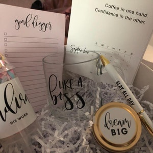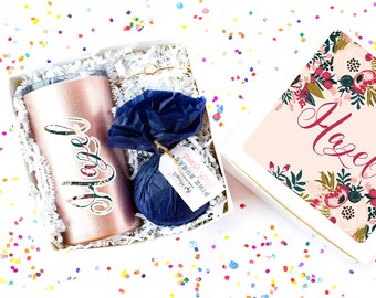 Everything included in this glorious box is so beautiful! Each item is better than I even imagined. The lettering and monogramming is top rate and I’ve already used my tumbler and gotten compliments. The box itself is of the highest quality; it’s fun, classy and filled with joy. Thank you