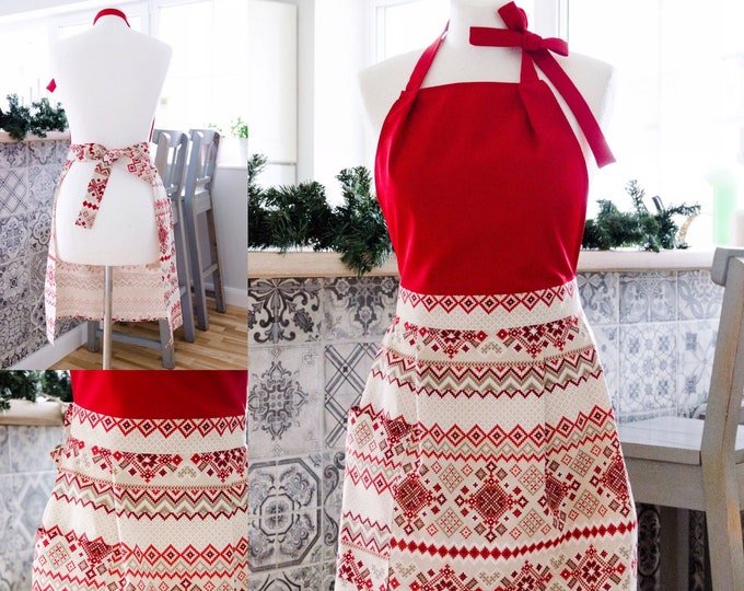 Christmas print full apron for women, Christmas gift, Christmas apron
