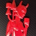 resin sculpture of a Krampus nutcracker, hand painted with a steel loop and ribbon for hanging