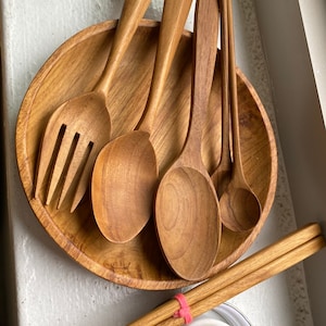 Nature Wooden Tongs, Teak Wood Kitchen Accessories Natural Cook Gift, Perfect Elegant Housewarming Gift, Cook Addict Gift,Wooden Salad Tongs