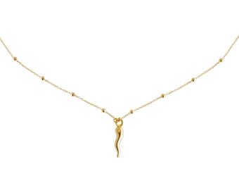 The cornuto, corno, or cornicello is an Italian amulet of ancient origin. Corno means "horn" and cornicello means "little horn" -- these names refer to a long, gently twisted horn-shaped amulet worn in Italy to protect against the evil eye. This is the greatest good luck pendant necklace!