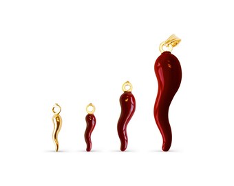 925 Sterling Silver Red Hot Chili Pepper Necklace dipped in 18k Gold, Lucky Corni, Cornicello Horn, Designer Chain Made in Italy, Layering
