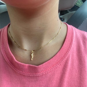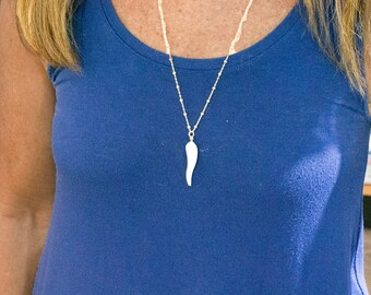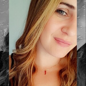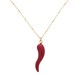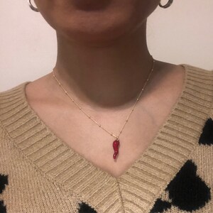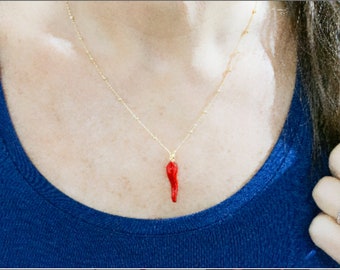 Tiny Horn: This red italian horn is dainty in size for a minimalist look at approx .5 inches long and is placed on a 15 inch specialized chain.