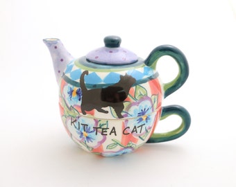 This handmade teapot and cup set were glazed a glossy white in all lead free, eco friendly glazes. This teapot and cup set was kiln fired three times: safe to dishwash and microwave! Made to enjoy tea from- do not place on open flame or stovetop. This item is to serve tea in- not to boil the water. Earthenware clay, kiln fired three times to 1900 degrees. Lead free, eco friendly, safe to dishwash and microwave.