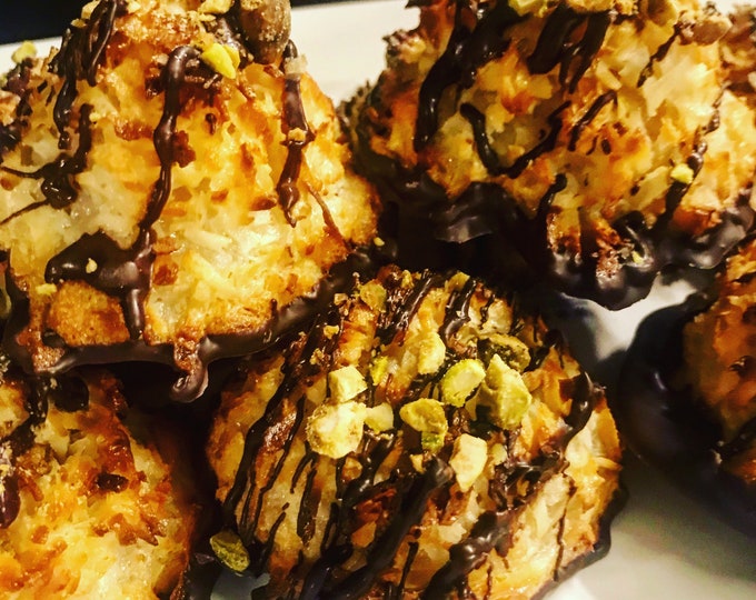 One Dozen Chocolate Pistachio Coconut Macaroons (Gluten Free)