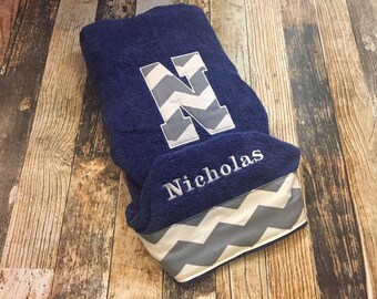 Child-Robe-Girls-Girl-Robes-CUSTOM-Order-Jen-Mustache-Black-White-Bath-Sleepwear-Beach--Hooded-Terry-Swim-Cover-Up-Gift--Size-8/9Tand 6/7T