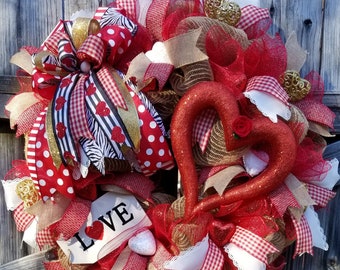 Love you to the moon and back mesh wreath Valentine wreath red wreath love wreath