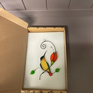 This hummingbird sun catcher is probably my most favorite purchase that I have ever gotten from Etsy! The pictures are gorgeous but they don’t even compare to the item in person! This was an amazing and timely purchase and I’m so happy that I got one!!! I was a little nervous about the package and the hummingbird getting damaged in transport but it was very carefully packaged and was super protected and was perfect when I opened the box!!! I can’t wait to purchase more items from this shop!!!