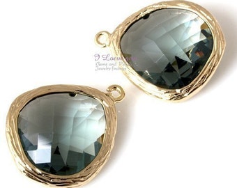 SALE/ 6pcs / Gold plated, BlackDiamond, Glass fancy rosecut 15mm