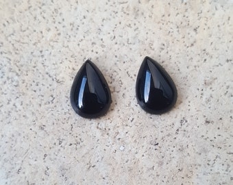 Black Onyx - 16 x 12 pear shaped Black Onyx cabochon - loose stones - Set of 2