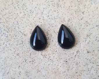 Black Onyx - 13 x 9 pear shaped Black Onyx cabochon - loose stones-set of 2