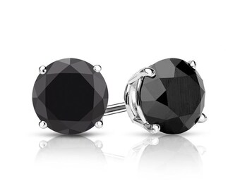 3.00cttw Black Diamond Earrings Studs - Round Brilliant Cut - White Gold