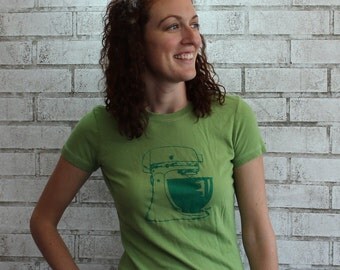 THIS DESIGN: This shirt has a mixer printed on it. All shirts are printed by me using screens I burned myself from my own drawings.