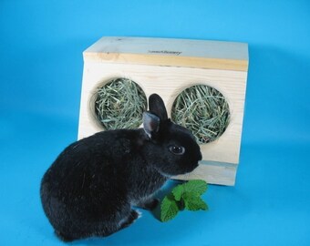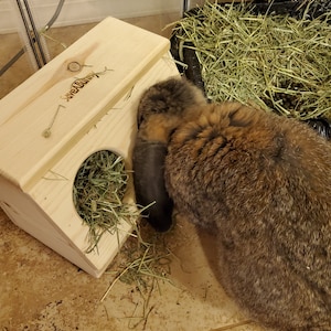 I love this feeder! The craftsmanship is superb, it saves us a ton of hay, and the wood is bunny safe so I don't have to worry about Mimi chewing on it. A very worthwhile investment, and it arrived much sooner than the listing suggested. Thanks Save a Bunny!