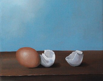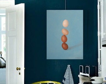 Still Life Painting - Stacking Eggs Kitchen Art Surreal Quirky Artwork Acrylic Original Botanical Wall Art