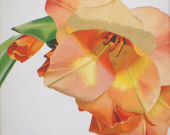 Orange Gladiolus Flower Painting - Close-up Floral Acrylic Painting Modern Contemporary Wall Art Christmas Gift